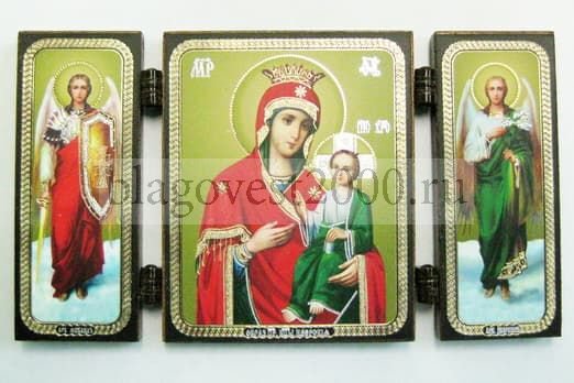 Складень МДФ (49), тройной, Иверская Б.М. с архангелами, 13 Х 7, 5 см.