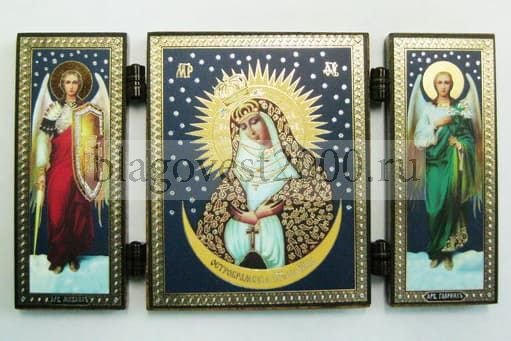 Складень МДФ (47), тройной, Остробрамская Б.М. с архангелами, 13 Х 7, 5 см.