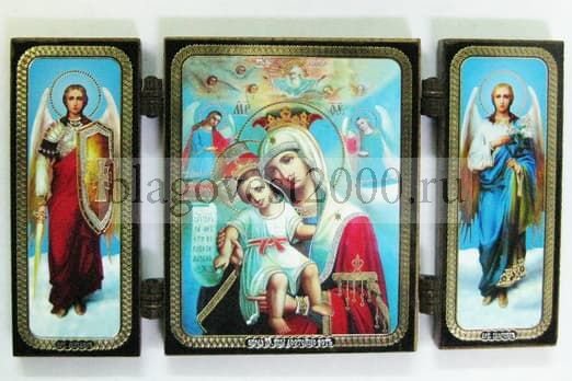 Складень МДФ (40), тройной, Достойно есть Б.М. с архангелами, 13 Х 7, 5 см.