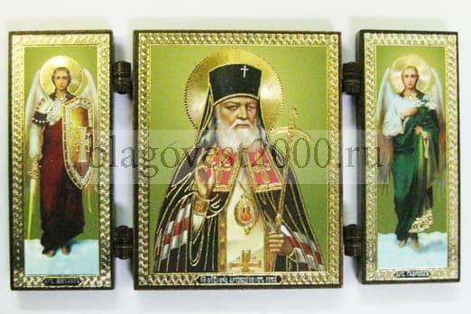 Складень МДФ (39), тройной, Лука (пояс) с Архангелами, 13 Х 7, 5 см.