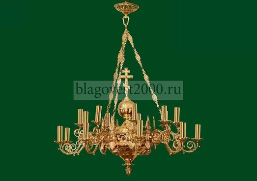 Благовест 2000 предлагает одноярусное паникадило на 18 свечей. Продукция всегда в наличии на складе компании. Вес паникадила 21 кг, высота 115 см, диаметр 95 см. Изделие от производителя.