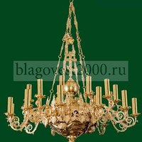 Паникадило от производителя Благовест 2000. Продукция всегда в наличии на складе компании. Вес паникадила составляет 26 кг, диаметр 100 см, высота 135 см. Изделие имеет 1 ярус и 24 светильника.