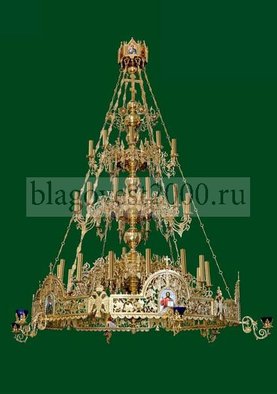 Качественное паникадило для храма от производителя. Срок выполнения заказа от 3 до 4 недель. Вес изделия 170 кг. Высота 260 см, диаметр 165 см. Изделие 3-ярусное на 36 светильников с хоросом и лампадами.