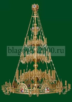 Качественное паникадило от производителя. Вес 230 кг. Высота 350 см, диаметр 190 см. Срок выполнения заказа от 3 до 4 недель. Изделие имеет 3 яруса на 54 светильника и хорос на 32 светильника.