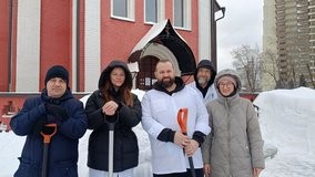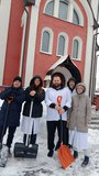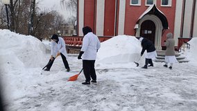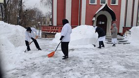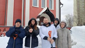 Добровольцы привели больных в храм, вместе помолились. А потом взяли лопаты и дружно побороли последствия снегопада.