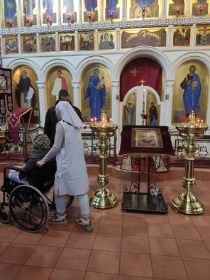Протоиерей Сергий Богомолов, больничный священник, помогает не только исповедаться и причаститься тем, кто с помощью сестер и добровольцев может посетить храм и соборной молитвой помолиться о здравии своих ближних, семьи и о самих себя, страдающих от ВИЧ-инфекции. Он регулярно обходит лечебные отделения и отделение интенсивной терапии, исповедает и причащает лежачих больных и тех, кто по состоянию не может дойти до храма.