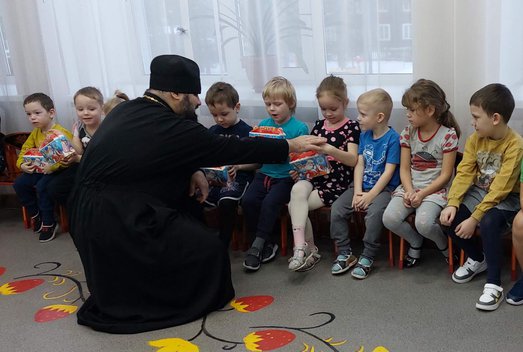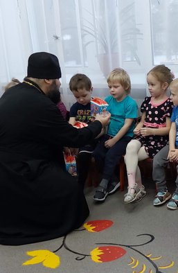 С праздником, дорогие мои братья и сестры во Христе. Сегодня в день памяти Прор. Даниила и трех отроков: Анании, Азарии и Мисаила (600 до Р.Х.) настоятель храма посетил с Рождественской вестью детский сад п.г. Седкыркещ. В преддверии Нового года и Рождества Христова батюшка рассказал детям о рождении Младенца Христа, Рождественской звезде и о дарах принесенных Младенцу ангелами, пастухами и волхвами.