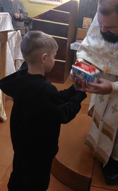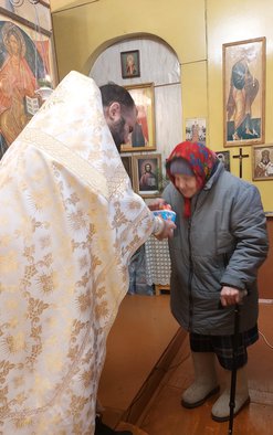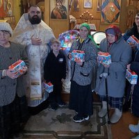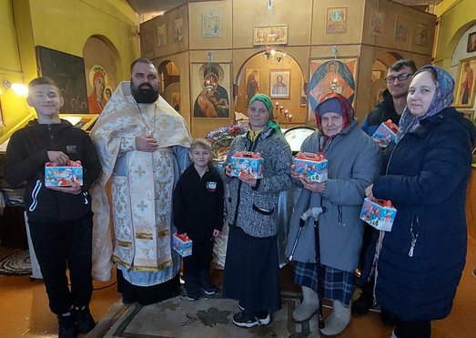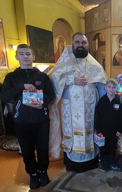 В завершении службы настоятель храма иерей Александр Туховский подарил Рождественские сладкие подарки всем прихажанам.