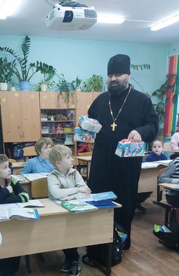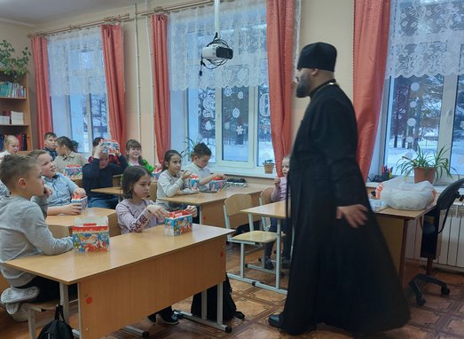 Священник провел беседу с учащимися, рассказал о Рождестве Христа и наступающим Новолетием благости, Новом годе.