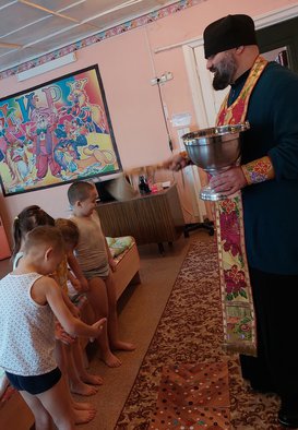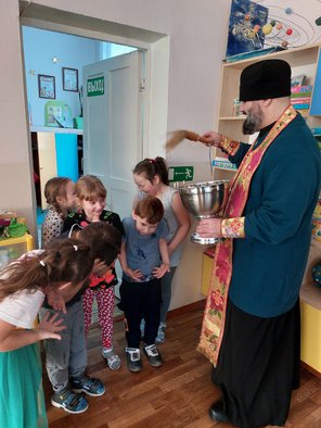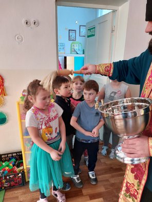 Все помещения Детских садов и всех детей и взрослых окрапил Крещенской водой.