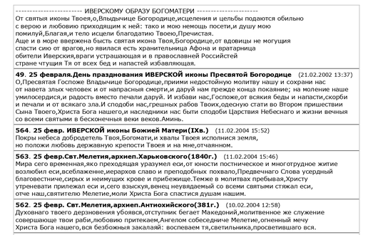молитвословия - страницы церковного календаря