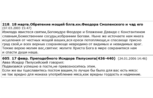 молитвословия - страницы церковного календаря