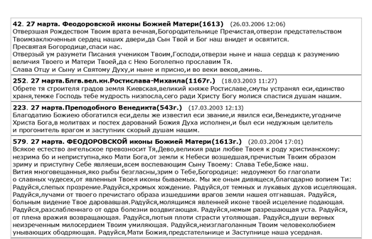 молитвословия - страницы церковного календаря