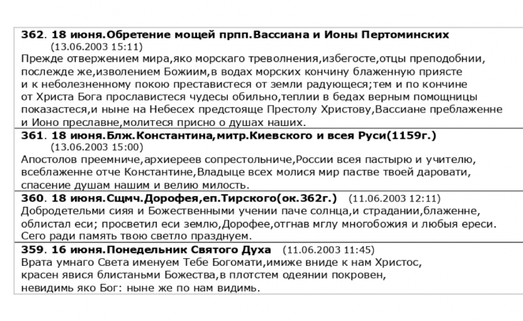молитвословия - страницы церковного календаря
