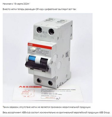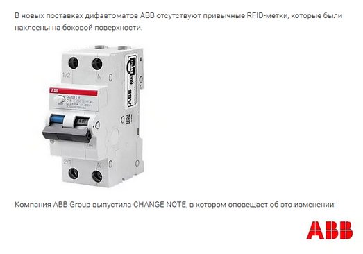 В новых поставках дифавтоматов ABB отсутствуют привычные RFID-метки, которые были наклеены на боковой поверхности.