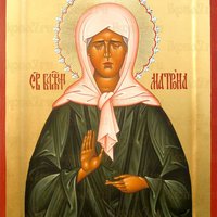 О, блаженная матерь Матрона, душою на Небесах пред Престолом Божиим предстоящая, телом же на земле почивающая и данною тебе свыше благодатью различные чудеса источающая! Воззри ныне милостивым твоим оком на нас, грешных, в скорбях, болезнях и греховных искушениях дни свои проводящих; утешь нас, отчаявшихся, исцели недуги наши тяжкие, от Бога нам по грехам нашим попускаемые, избавь нас от многих бед и несчастий, умоли Господа нашего Иисуса Христа простить нам все наши согрешения, беззакония и грехопадения, в чем мы от юности нашей даже до нынешнего дня и часа согрешили, дабы по твоим молитвам получив благодать и великую милость, мы прославили в Троице Единого Бога, Отца и Сына и Святого Духа, ныне и всегда и во веки веков. Аминь.