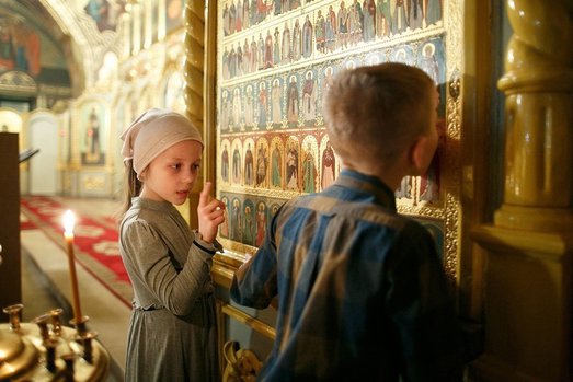 При прикладывании ко Святому Евангелию, Кресту, честным мощам и иконам следует проходить в должном порядке, не спеша и не теснясь, полагать два поклона перед целованием и один после целования святыни.