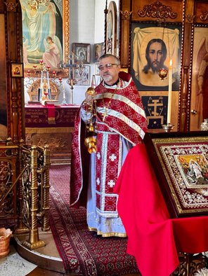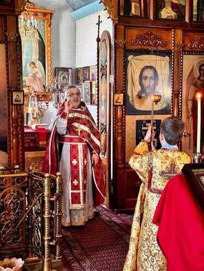 Иерей Василий провел торжественное богослужение и прочитал Евангелие, и в конце службы напомнил о важности веры и любви к ближним.