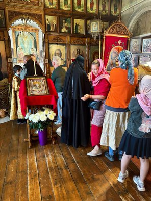 Сегодня на литургии в Казанском храме собрались сестры и прихожане для участия в воскресном богослужении.