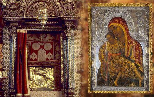 Прежде чем попасть на остров Кипр чудотворная икона Пресвятой Богородицы произволением Божиим долго странствовала. Сначала находилась в одной из первых христианских общин в Египте, затем, в 980 году, была перевезена в Константинополь, где оставалась до царствования императора Алексия Комнина (конец ХI – начало ХII века), а затем вернулась на Кипр. Произошло это так: кипрский правитель Мануил Вутомит, заблудившись во время охоты в горах и сильно озлобившись, жестоко избил встретившегося ему инока-пустынника Исаию. В наказание за это Мануила настиг тяжкий недуг. Между тем старцу-отшельнику Исаии в чудном знамении было открыто, что его стараниями чудотворный образ, написанный святым евангелистом Лукой, будет пребывать на острове Кипр. Старец много трудов положил на выполнение Божественного откровения. Начав возводить храм для иконы Пресвятой Богородицы, он повелел пришедшему к нему раскаявшемуся Мануилу отправиться в Константинополь к императору и вернуть чудотворный образ. Наместник не сразу решился заговорить об иконе с правителем Царьграда, однако, когда дочь последнего заболела, Мануил пришел к императору и передал ему повеление инока. После того, как правитель пообещал отправить святую икону на остров Кипр, девушка сразу почувствовала ослабление болезни.
