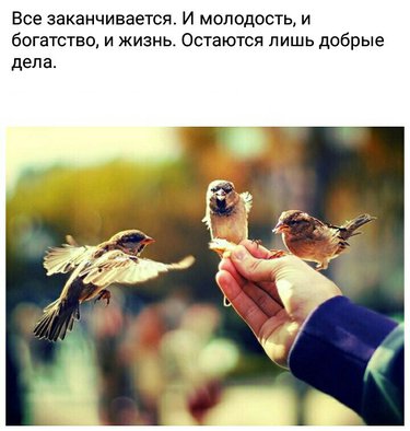 «Так дано много! Так легка трата: возлюби Бога, полюби брата, накорми пташку, пожалей кошку, дай больным чашку, а другим — ложку. Так уж Всевышний создал: мы — люди не когда дышим, а пока — любим…»