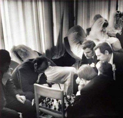 Помню случай, когда после росписи в ЗАГСе женихи и новоиспеченные мужья вот так заигрались в шахматы – так одна заждавшаяся невеста села за доску и красиво выиграла пару партий ! И все быстро разошлись – подальше от такого позора…