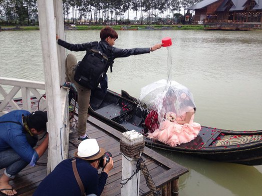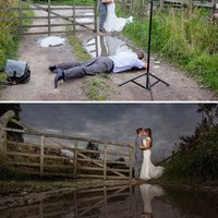 Всем вступающим в брак хочется, чтобы о таком важном событии в их жизни осталось воспоминание, в том числе в виде романтичных фотографий. Свадебные фотографы прекрасно это понимают и стараются сделать всё, что в их силах, чтобы запечатлеть этот огромной важности момент во всей красе. Они падают в лужи, залезают на скалы и деревья, чтобы сделать первый день молодожен незабываемым. Посмотрите, как зачастую это происходит, и улыбнитесь :D Оцените, на какие ухищрения идут фотографы и их ассистенты и какие фотографии получаются в результате их усилий