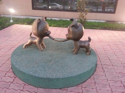 В 2013 г. в Новокузнецке открылся памятник "Сосиска дружбы". Памятник изображает персонажей всеми любимого советского мультика "Котенок по имени Гав" - самого котенка Гава и его лучшего друга - щенка Шарика.Памятник практически повторяет эпизод из первой серии мультика, когда котенок и щенок дели...