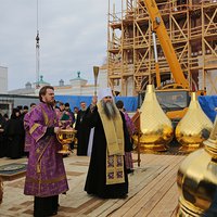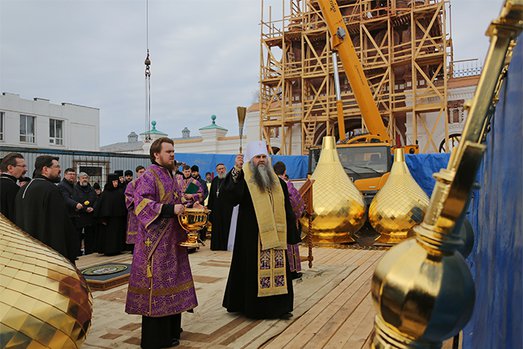 Сегодня исполняется пять лет с начала работы попечительского совета по воссозданию святынь Сарова, Дивеева и Арзамаса. И именно в этот памятный день строительство Саровских ворот в Серафимо-Дивеевском монастыре завершилось освящением куполов и крестов для них. Чин освящения совершил митрополит Нижегородский и Арзамасский Георгий. После чина освящения начались работы по установке куполов и крестов.