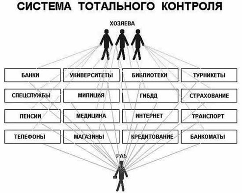 Тотальный контроль за людьми сейчас идет по всем направлениям: внедряются системы идентификации личности с помощью электронных карт, сканирования сетчатки глаз, отпечатки пальцев, чтения по губам, анализа походки, вживления микрочипов в тело человека. И, в первую очередь, это контроль за всеми действиями, перемещениями, а также доходами каждого гражданина. Любой портал, социальная сеть собирает о вас информацию, а любая самообновляющаяся программа, установленная на вашем компьютере – потенциальная брешь в системе безопасности. Идет тотальный сбор персональных данных на каждого человека, которыми будут распоряжаться по своему усмотрению сильные мира сего.