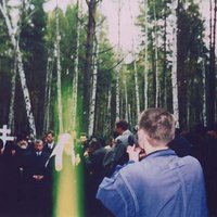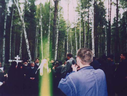 Этот снимок сделан любительской камерой послушником Андреем во время посещения Его Святейшеством Святейшим Патриархом Алексием II Ганиной Ямы - места уничтожения честных останков царя - страстотерпца Николая II и Его многострадальной Семьи 23 сентября 2000 года.