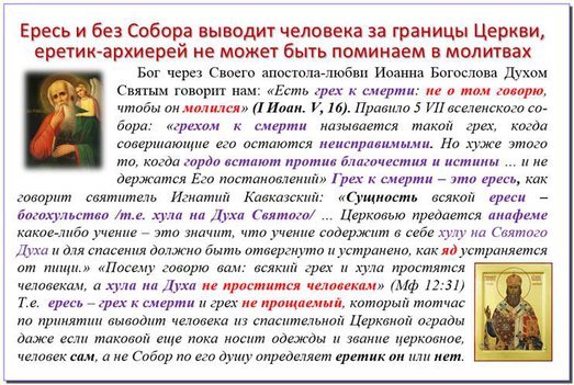 И НИКАКОЙ ПОЛЬЗЫ ОТ ТОГО, ЧТО ВЫ ВЕРОВАЛИ ПРАВИЛЬНО И ЧТО ВЫ ПОНИМАЛИ, ЧТО ЕРЕСЬ ЭКУМЕНИЗМА ЭТО РАЗРУШАЮЩЕЕ ЗЛО, НИКАКОЙ ПОЛЬЗЫ ПОВТОРЯЮ НЕТ.
