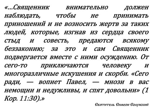 "Священник должен не принимать приношений за людей, которые предаются беззаконию"