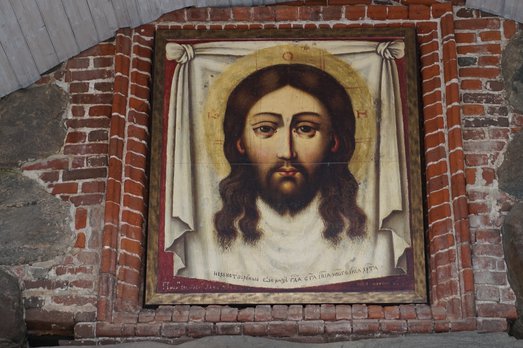 Велича́ем Тя, Живода́вче Христе́, и чтим о́браз Твой Святы́й, и́мже нас спа́сл еси́ от рабо́ты вра́жия!