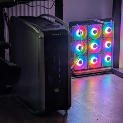 Сборка в топовом корпусе cooler master cosmos из далёкого 2008 года, но на современном железе. Процессор i7 14700kf в разгоне под внешней кастомной системе жидкостного охлаждения в паре с видеокартой rtx 3080 на водоблоке обеспечивает впечатляющий уровень производительности при минимальном уровне шума!