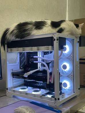 Эстетичная сборка на кастомной системе жидкостного охлаждения в корпусе-аквариуме 1st player mv7, с радиатором bykski 360*60, помпой ddc