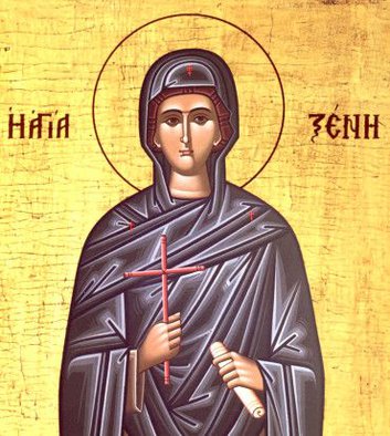 Святая Ксения в миру носила имя Евсевия, жила в 5 веке, была дочерью римского сенатора. Чтобы избежать предстоящего ей брака, она тайно ушла из родительского дома и попала в город Миласс в Кесарии. В Милассе, уже сменив имя, Ксения купила землю, построила храм во имя святого Стефана и основала женский монастырь. Вскоре после этого епископ Миласса, Павел, посвятил Ксению в диаконисы, как вполне достойную этого звания по добродетельной жизни. Святая всем оказывала помощь: для бедных была благотворительницей, для скорбящих - утешительницей, для грешных - наставницей. Имела глубокое смирение, считая себя хуже и грешнее всех. В подвигах своих руководствовалась советами палестинского подвижника преподобного Евфимия. Кончина святой девы, во время молитвы, была отмечена Господом явлением в небе над монастырем знамения в виде светлого венца с блистающим посреди него крестом, который сопровождал тело святой, вынесенное в город к народу, и сохранялся до самого момента погребения. Множество больных, прикасаясь к мощам святой, получило исцеления.