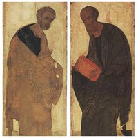 На фото - иконы Андрея Рублева из Успенского собора во Владимире. 1408 г. Находятся в Санкт-Петербурге в Государственном Русском музее.