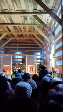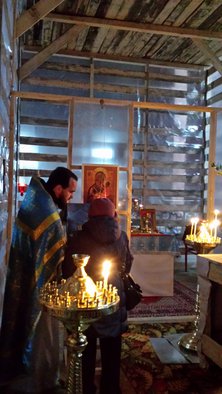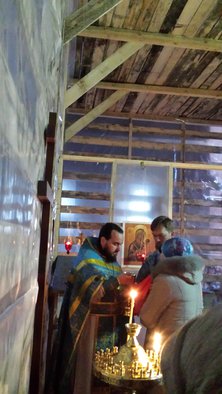 4 декабря 2014 года, впервые за последние 80 лет, совершена Божественная Литургия, приуроченная к празднику Введения Пресвятой Богородицы во Храм в деревне Хотово в храме, освященном в честь этого события. Служил настоятель отец Олег Меркулов, священник храма Анны Кашинской на Выборгской стороне СПб. Помолиться собралось много народу, один автобус из СПб, второй из Вындиного острова. Пел хор знаменным распевом. Во временном сооружении, напомнившем мне своей конструкцией Ковчег, царила очень молитвенная атмосфера. Горели лампадки, подвешенные к иконкам, и раскачивающиеся на сквозняке. Народ Божий тихо и благоговейно возносил свои помыслы к Небу, шла исповедь, затем Причастие.Крестный ход, не смотря на штормовой ветер, вывел всех на улицу. Батюшка служил самозабвенно, на подъеме душевный сил! По окончании службы, промерзшие до основания, были приглашены на праздничную трапезу, согреты горячим чаем. Тихая Литургия, казалось, примирила нас с Богом. Воспоминания об этом светлом дне останутся на всю жизнь...