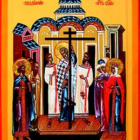 Спаси́, Го́споди, лю́ди Твоя́ и благослови́ достоя́ние Твое́, побе́ды на сопроти́вныя да́руя и Твое́ сохраня́я Кресто́м Твои́м жи́тельство