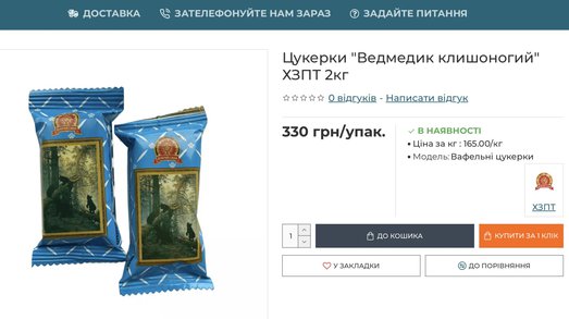Конфеты реально вкусные, название вполне грамотное - в правильном переводе на украинский "Мишка (в смысле медведь, с оттенком симпатии к нему) косолапый" звучит именно как "Ведмедик клишоногий".