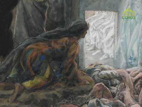 Событие, описанное в этом отрывке, происходит в час глубочайшего отчаяния Марии Магдалины. Она, свидетельница небывалых чудес, верная последовательницы Христова, не отошедшая от Него и в момент распятия и видевшая место захоронения своего возлюбленного Учителя, стоит теперь на коленях у пустого гроба.