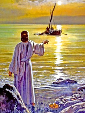 Ученики, под небом ясным, На ловле рыб пробыли ночь. Но оказался труд напрасным: Бежала рыба будто прочь. А утром с брега слышат: