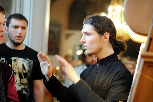 В пении так же...Если не все выкладываются на всю катушку, а поют, уткнувшись в сотовый телефон, или не столько поют, сколько мяукают, у регента, как у вожака стаи есть только один вариант действия - грозно рыкнуть на аутсайдеров, возможно, даже потаскав отличников лени за загривок. И пусть в мире людей процесс выглядит мягче, резкий окрик или грозная речь иногда служат хорошим отрезвляющим и стимулирующим фактором перед славной охотой на Всенощном бдении.