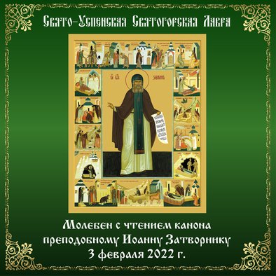 Молебен с чтением канона прп. Иоанну Затворнику совершается в Успенском соборе еженедельно по четвергам.