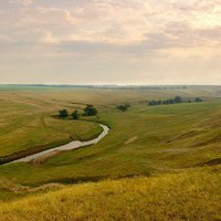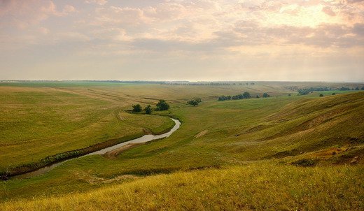 /.../Между тем перед глазами ехавших расстилалась уже широкая, бесконечная равнина, перехваченная цепью холмов. Теснясь и выглядывая друг из-за друга, эти холмы сливаются в возвышенность, которая тянется вправо от дороги до самого горизонта и исчезает в лиловой дали; едешь-едешь и никак не разберешь, где она начинается и где кончается... Солнце уже выглянуло сзади из-за города и тихо, без хлопот принялось за свою работу. Сначала, далеко впереди, где небо сходится с землею, около курганчиков и ветряной мельницы, которая издали похожа на маленького человечка, размахивающего руками, поползла по земле широкая ярко-желтая полоса; через минуту такая же полоса засветилась несколько ближе, поползла вправо и охватила холмы; что-то теплое коснулось Егорушкиной спины, полоса света, подкравшись сзади, шмыгнула через бричку и лошадей, понеслась навстречу другим полосам, и вдруг вся широкая степь сбросила с себя утреннюю полутень, улыбнулась и засверкала росой.