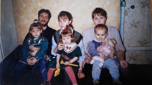 Фотография сделана в Никин день рождения. Ей подарили куклу. Двадцать первое апреля 1998-й год. Андрей Жеребцов, Таня Орлова, Галя Степанова, Ника Логачёва, Даша и Варя Степановы. Даша сказала: сам ты Андревна.