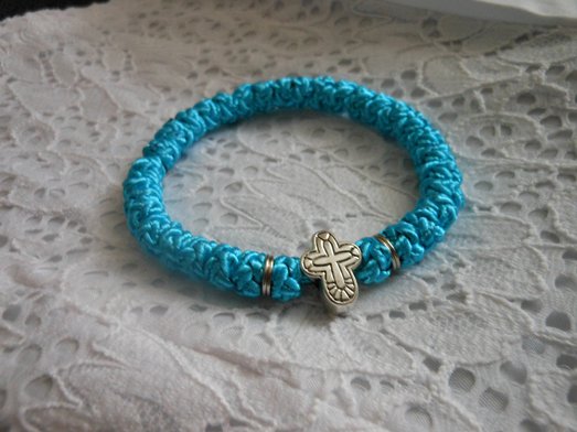 Ольга, с середины я начинаю плести, если чётки на 50 или сотню узлов. Делю ровно пополам и плету в обе стороны. На 30 же узлов такой необходимости нет, как мне кажется. Концы не длинные (не путаются) и в процессе работы не успевают затерться.