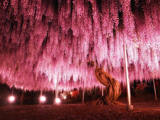 Это растение из парка цветов Асикага в Японии занимает 1990 впечатляющих квадратных метров и датируется примерно 1870 годом. Хотя глицинии выглядят как деревья, на самом деле это лианы. Так как со временем они могут становиться очень тяжелыми, вся структура держится на стальных опорах, что позволяет посетителям ходить под сводом и наслаждаться розово-фиолетовым небом из цветов.