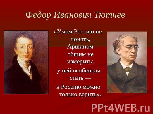 Федор Иванович Тютчев не только крупнейший русский поэт. Он по праву может считаться и значительным политическим мыслителем, классическим "русским империалистом".